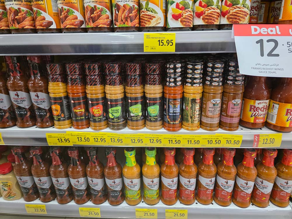Minnies sauces on the shelves of one of Carrefour supermarkets in Riyadh
