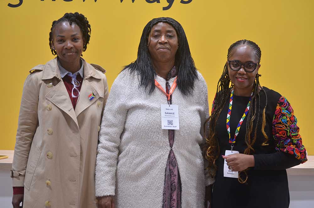 From left:, The African Rail Industry Association CEO, Ms Mesela Nhlapo, South Africa’s Ambassador to Spain, Ms Sankie Mthembi-Mahanyele, and the dtic official, Ms Hloniphile Nkiwane at the South Africa stand during the concluding day of Rail Live 2025 in Madrid.