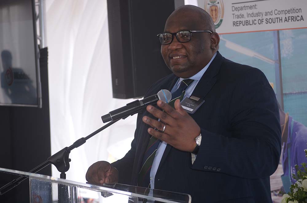 The Acting Deputy Director-General of the Sectors Branch at the dtic, Dr Tebogo Makube, addressing attendees during the launch of the strategic partnership between Wabtec South Africa and Lucchini South Africa in Germiston.